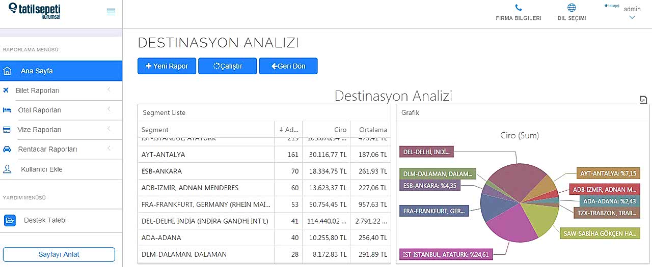Örnek raporlardan bazılarının başlıkları aşağıdaki gibidir. Talep ve şirketin ihtiyaçlarına göre arttırılabilir, çeşitlendirilebilir.